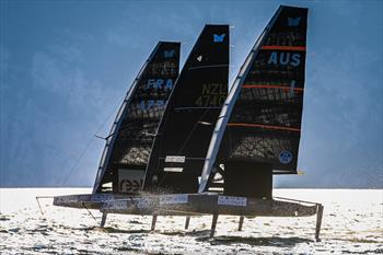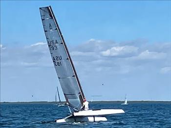 Chris Brwon flying a hull during the 2023 A-Class Midwinters