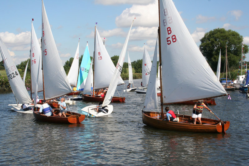 A fleet of Waveney ODs. sailed up river, the day before from Oulton Board, something they have been done for many many years. There was also a large fleet of Norfolk ODs. from the host club, Norwich Frostbites and Norfolk Broad Yacht Club at Wroxham, this was probably the largest fleet of Norfolk’s together seen outside their championships for a sometime. Not to be out done there were good fleets of Lasers, Enterprises, Toppers and Optimists, this was the best turnout seen for twenty or more years on the River Waveney.