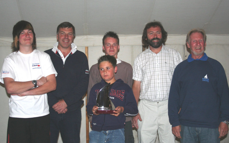 The race for helms under 17 was abandon after 2 minutes when the wind died and the boats started drifting backwards, it was re sailed on Thursday lunch time. Harry Shipley of the home club won from Ruben Salder who had travelled from Cornwall to Beccles with his dad and granddad, they had sailed at the club in the 1970/80s. Richard Harrod presented the trophy to Harry.