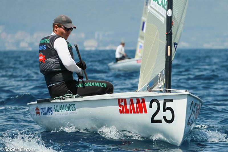 Light winds on the second day of the Finn Gold Cup in Gaeta meant only one race could be sailed. Phillip Kasueske (GER) sailed very well to win his first ever major international Finn race. The win moves him up to second overall after three races behind Deniss Karpak (EST), who placed 13th in the race. Piotr Kula (POL) crossed in third to end the day in third overall.