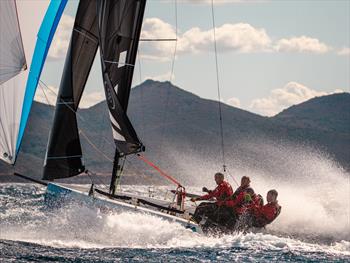 Sunday delivered a totally different scene with 15-20 knots of breeze and building sea state. The racing at the top end of the fleet became a tactical and physical battle. RS Electric showed blistering upwind speed, while Dark and Stormy had the edge downwind, leading to a thrilling game of cat and mouse in each race.