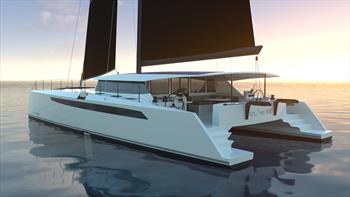 Carbon construction, 3D printing and light weight composites combine with cruising convenience to make a fast catamaran capable of travelling on extended sails in luxury.