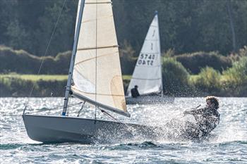 After a short wait while the Blaze fleet finished their race the Solos lined up for the next start. So the committee boat end again, except for Mike Dray who sat in isolation at the pin end. His choice proved to be the right one and he crossed the fleet on port tack, tacked onto starboard above all the boats and headed for the cliffs. Rounding the windward mark in first place he proceeded to do a horizon job.