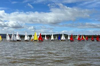 Blustery conditions eventually settled into a steady 15-20 knots. With 80 Fireflys fanned out across the reach, the first beat was a spectacular sight. RHS, who did not compete in Wednesday's mini-series, made a commanding start with a clean sweep of the podium: