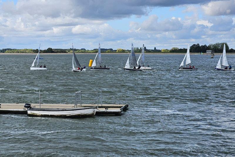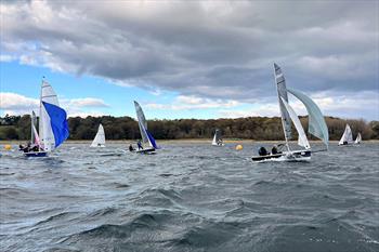 The Brights led the way to the first windward mark - home club advantage! Shifty conditions meant boats were switching places throughout the fleet. Three testing laps later and the Freelands inland expertise put them in first place, swiftly followed by Paul Spanner Cullen and then the Adey & Roz Stell. Pete Vincent & Rebecca Bradley in fourth and the Brights in fifth.