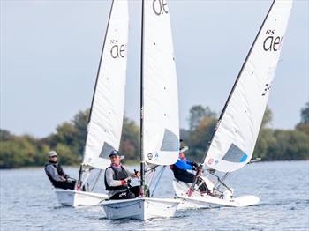 After a break for lunch the racing started again in a variable wind that dropped for the remaining races, accompanied by rain. Theo continued his winning streak to win the Notts County Junior Open. James and Peter had a forth and a win to count, bringing them up to second place, whilst Barnaby had consistent seconds and third to finish third overall.
