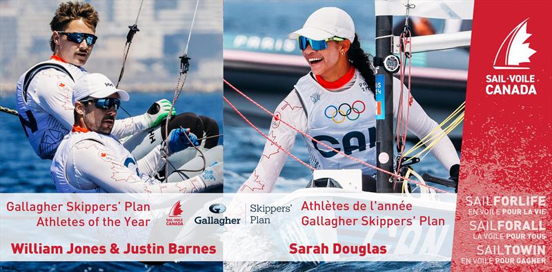 Sarah Douglas from Toronto and the Canadian 49er Team comprised of Will Jones and Justin Barnes were named Gallagher Skippers' Plan Athletes of the Year for 2024.