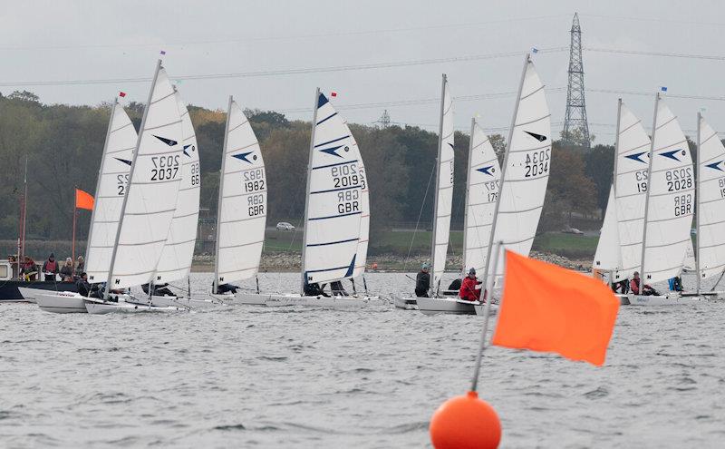 The first race got away on time and Steve Sawford (Rutland) took the early lead followed by Mark, Jenny, Jason, Simon and Liam. On the downwind leg of lap two, as with the previous day, the pack was re-shuffled with Jason and Mark moving ahead of Steve and Liam pulling ahead of Jenny. The front of the fleet tried different tactics on the upwind leg but generally, it appeared that staying out to the left was still favoured.