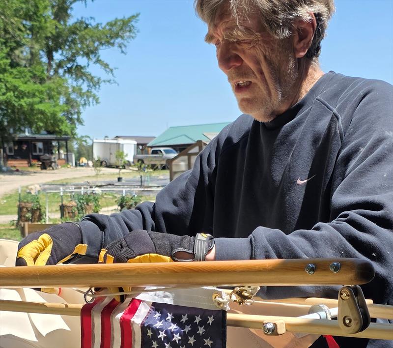 His mast will feature a removable top section for transport, a new external sail track for the sprit sail, and a smart reefing setup so he can reduce sail in seconds. True to Robert's tidy nature, everything including mast, sprit, and sail will stow neatly inside the boat for transport on its trailer.