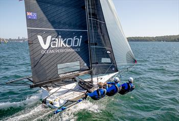 A double race victory to the Yandoo team of John 'Herman' Winning, Fang Warren and Lewis Brake, on Sydney Harbour today, sees the team grab a narrow lead at the half way point in the eight-race NSW 18ft Skiff Championship being conducted by the Australian 18 Footers League.