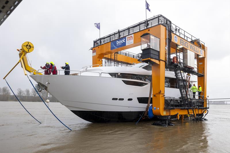 For this memorable event, the first time that only yachts from the British Princess shipyard will be lifted out of the water on a single day, employees such as Executive Director Simon Clare will also be travelling from Plymouth, England, to the Rhine. From 8:30 a.m. until the afternoon, 'Big Willi' will ensure that these enchanting beauties are brought safely ashore.