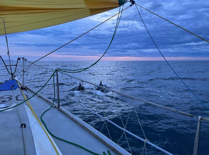 Acrobatic dolphins escorting Alien at daybreak on the final day of sailing © Glen Cowan