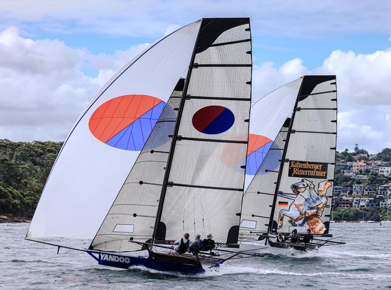 18ft Skiff Season Point Score Race 19 - Yandoo rolls over Black Knight on the final run © SailMedia